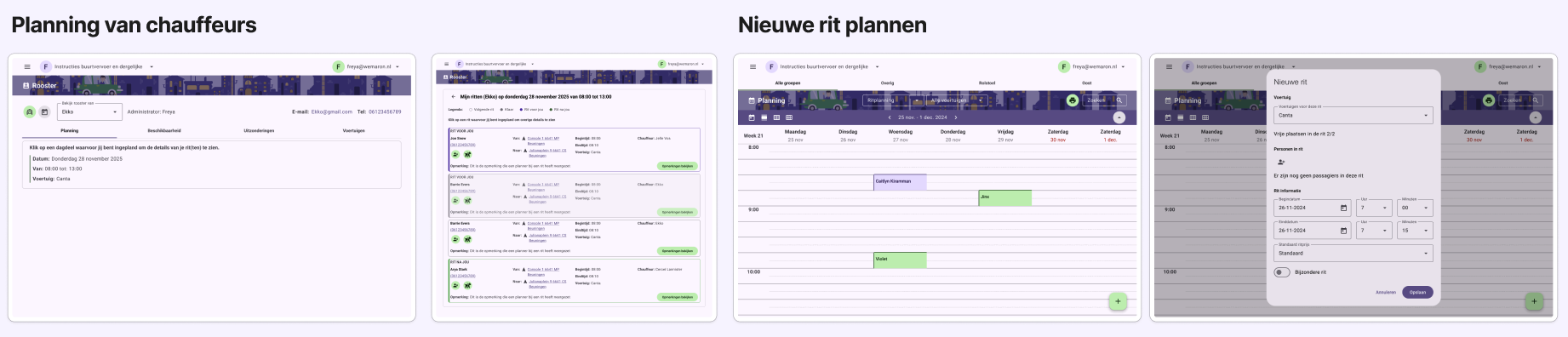 Hallo Buurtvervoer is a scheduling system for taxi rides. The system is primarily used by volunteer organizations that drive short trips so that everyone in the neighborhood can remain mobile. The challenge was to adapt an existing planning system that is very attached to the current system. The branding needed to be friendly and not overwhelming so that the elderly target audience could understand clearly