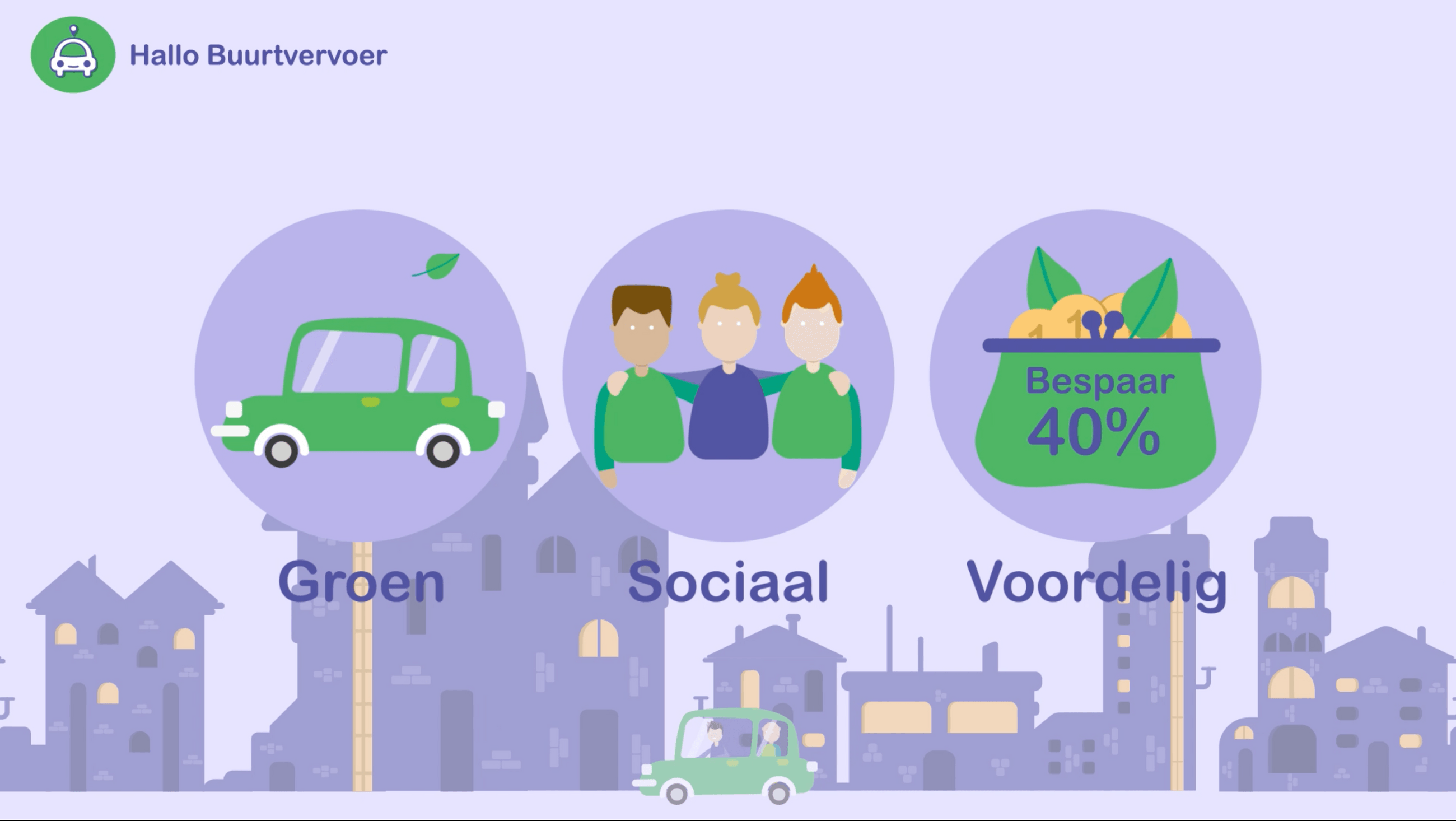 The video below explains in 45 seconds what Hallo Buurtvervoer is. The video was used for a pitch in a competition. The video was made in two working days since it was a very short notice to get the video uploaded for the pitch. The elements that are used are from previous design for Buurtvervoer like the website and flyers. The transitions and animations are kept simple to save time but keep a great result for the client.